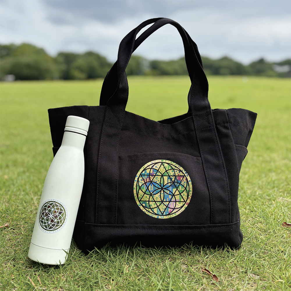 トートバック(ブラック) Mマーク『Cosmic Flower Hexagram』 ※予約販売商品